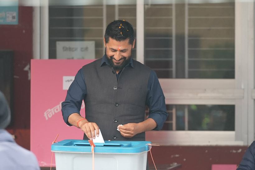 Lamichhane voted at a polling center set up at the Mahankal Chaur premises of Upatyaka Khanepani Limited in Kathmandu Constituency-3.